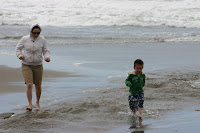 So a few week ends ago we went to the beach and it was sooooooo! Windy that we couldn't stay for very long. Poor Jake sat on my Mom's lap most of the time he was so miserable. But Sam had a lot of fun playing in the water.